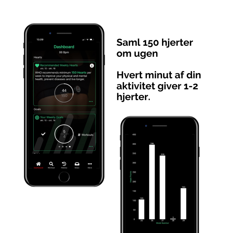 Ved at bruge IQNITER app’en kan du nemt og enkelt se, om du lever op til disse anbefalinger. Vi omregner nemlig din puls til “hjerter”, og alt efter hvilken intensitet du træner ved optjener du 1-2 hjerter pr. minut.